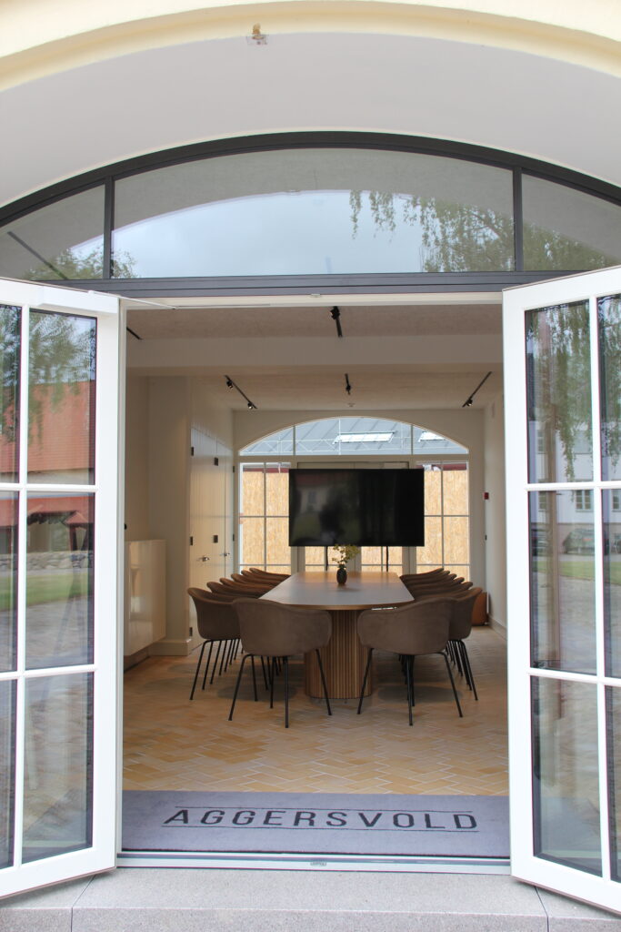 **Saddelrummet**, located in the newly renovated wing "Stalden," is a meeting room equipped with large windows at both ends, providing a bright and airy environment. From the room, you can enjoy views of the estate’s courtyard and surrounding nature.