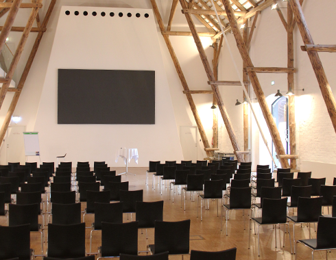Kornmagasinet er endnu en af vores multisale, beliggende for enden af Stakladen. Her får du et råt lokale med betongulve og flotte spær – og ikke mindst 14 meter til loftet og super akustik.