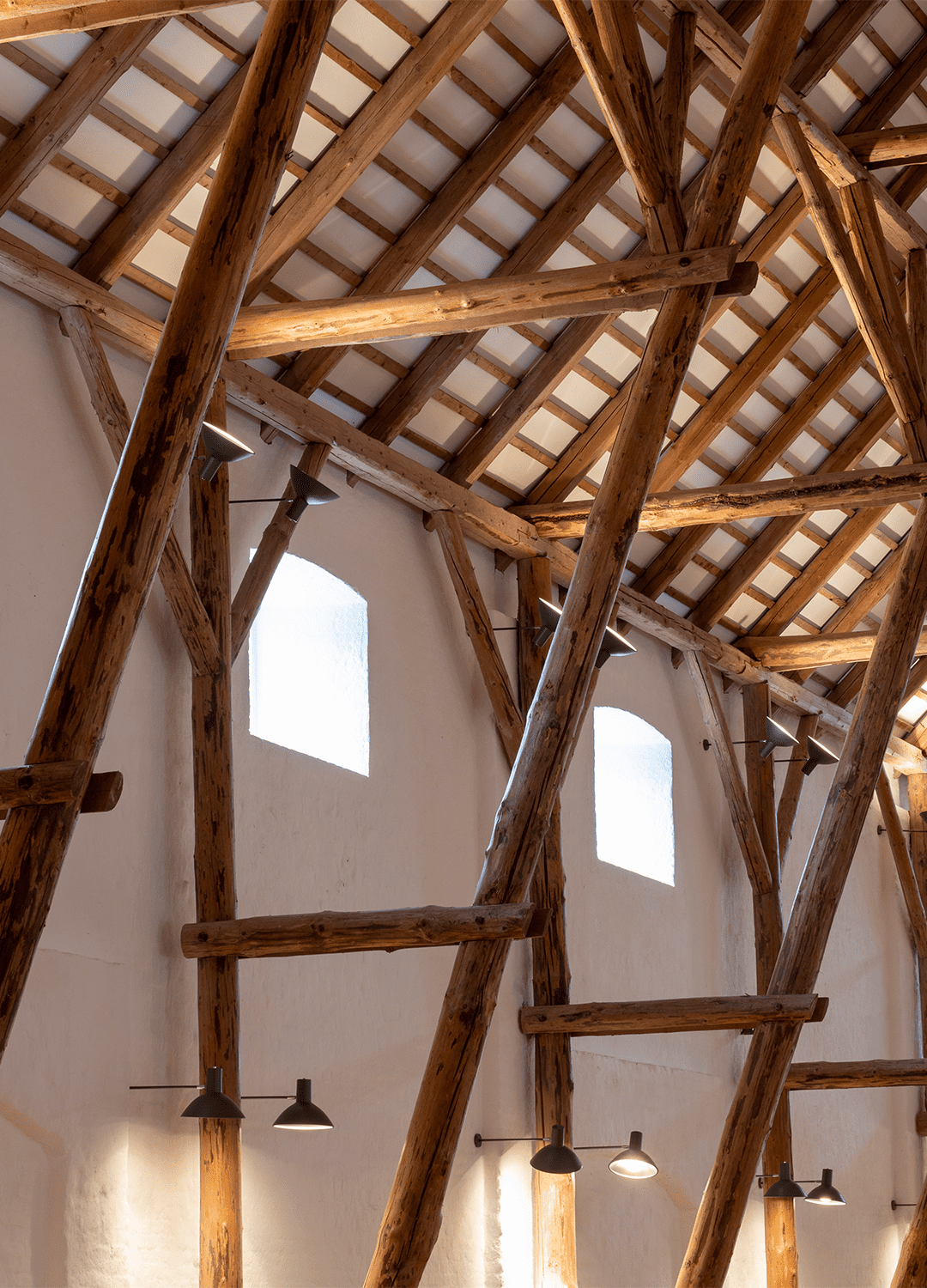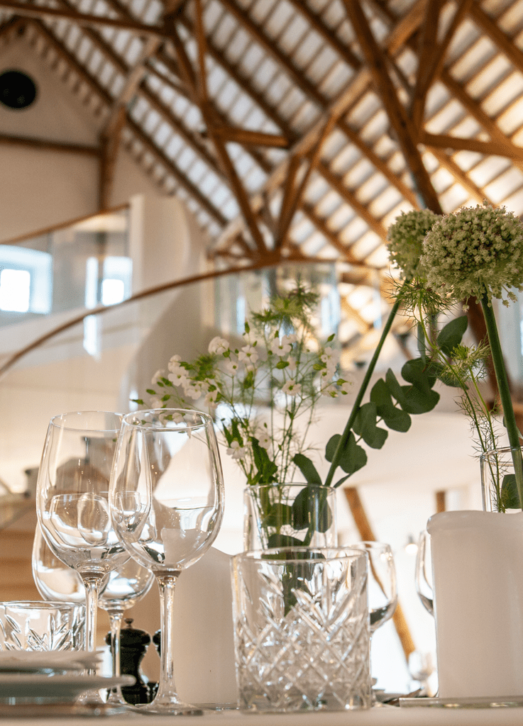 Salen er helt unik. Det er en perfekt multisal til alle former for arrangementer – store som små. Vi har endnu ikke haft en gæst, der ikke blev overvældet af lokalets specielle atmosfære og de smukke spær.